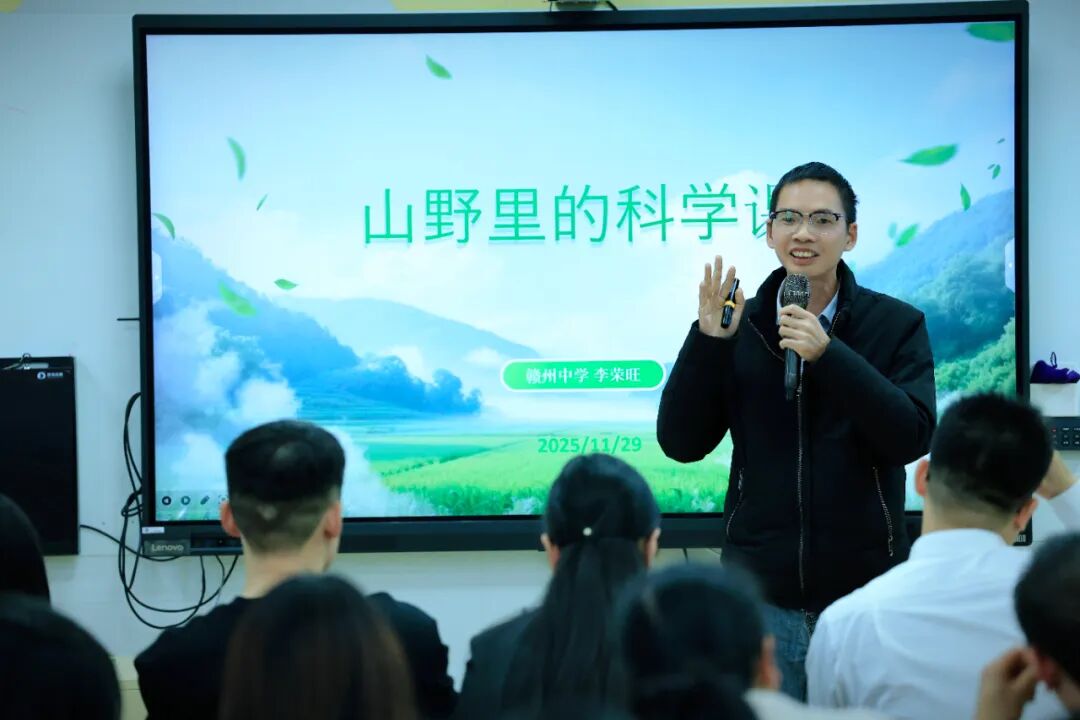 强化探究项目设计。赣县区第二中学工会主席、省学科带头人陈功健以“自来水探秘”“电厂研学”等项目为例,分享如何引导学生“学做人、立志向、勇创造”,其指导的学生累计千余人次获国家级科技奖项。