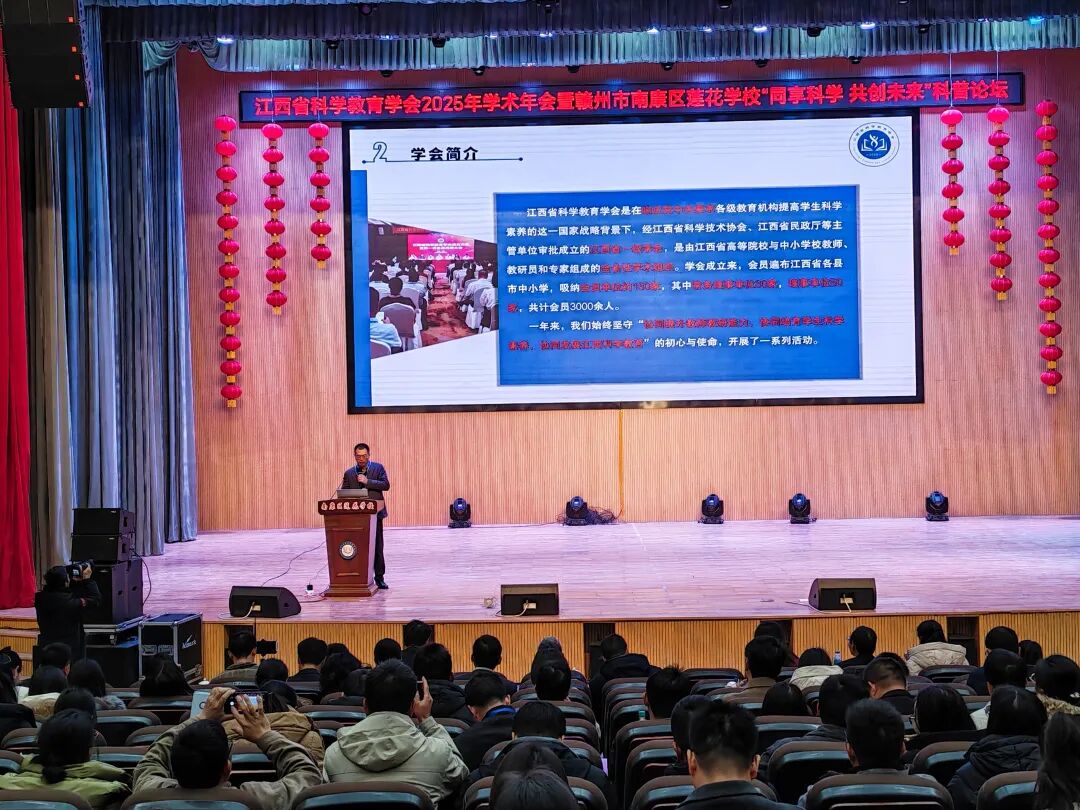 2025年12月27日,江西省科学教育学会2025年学术年会暨“同享科学 共创未来”科普论坛在赣州市南康区莲花学校成功举办,来自全省各地的科学教育学会理事、会员代表、专家学者、一线科技教师等600余人共同参加会议。