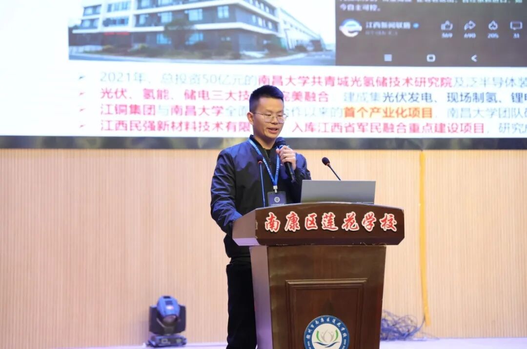 闻家君副校长介绍江西师范大学附属中学赣江创新研究院分校依托江西师大附中教育集团,构建小初高一体化科学教育体系,通过阶梯式课程、项目式教学、少年科学院及竞赛活动,强化学生科学素养与实践能力,并完善组织与资源保障机制,探索可复制推广的基础教育阶段科学育人路径。